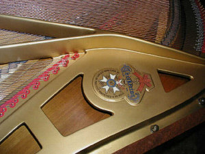 I am amazed that David could get the sound board so clean, and the harp decal is beautiful. I have never been able to get this kind of results with cleaning. One thing that helped must have been that no one was a smoker in the home where this piano was used over the years. Tars and nicotine really make this task nearly impossible. Note the effect
