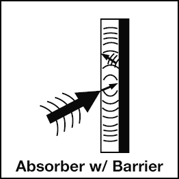 Absorber/barrier combinations give you the advantage of two noise-control products. Sound waves pass through the absorber where they are converted into heat energy. Any sound waves that then hit the barrier reenter the absorber which converts those remaining sound waves into heat energy.